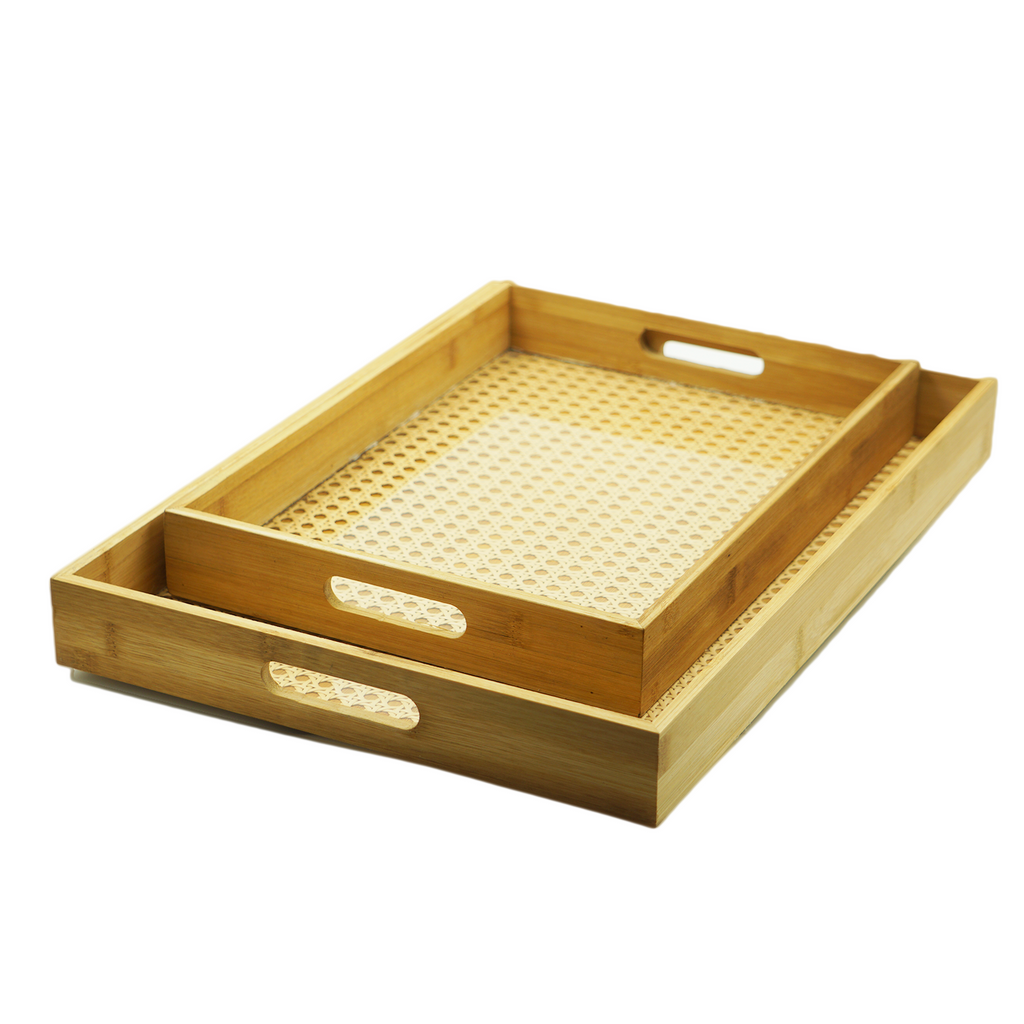 Este conjunto de 2 bandejas em MDF com acabamento em madeira clara alia resistência e elegância. As alças facilitam o transporte, tornando-as práticas para servir ou decorar ambientes. Duráveis e versáteis, são ideais para uso cotidiano ou momentos especiais, valorizando sua organização com estilo discreto e sofisticado.