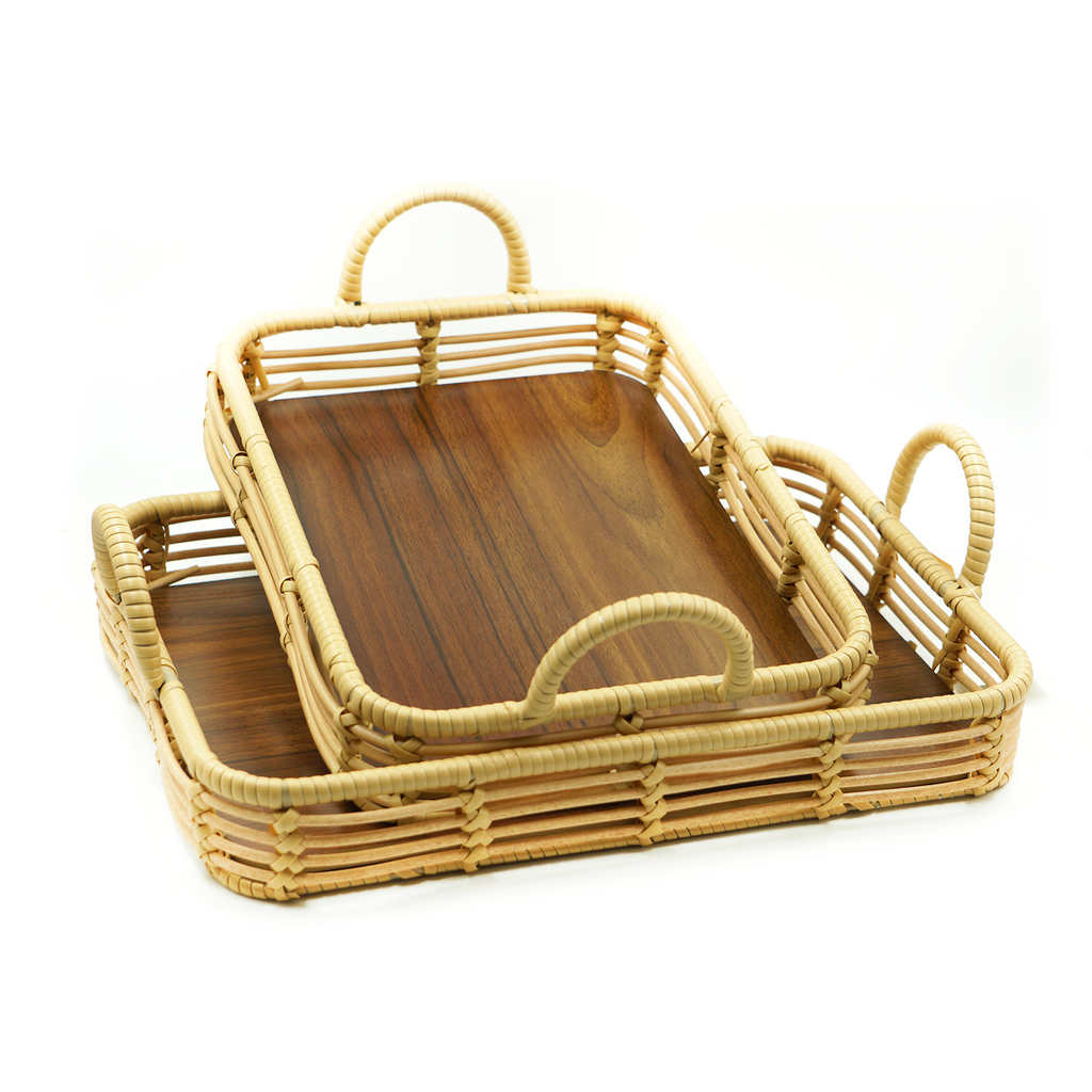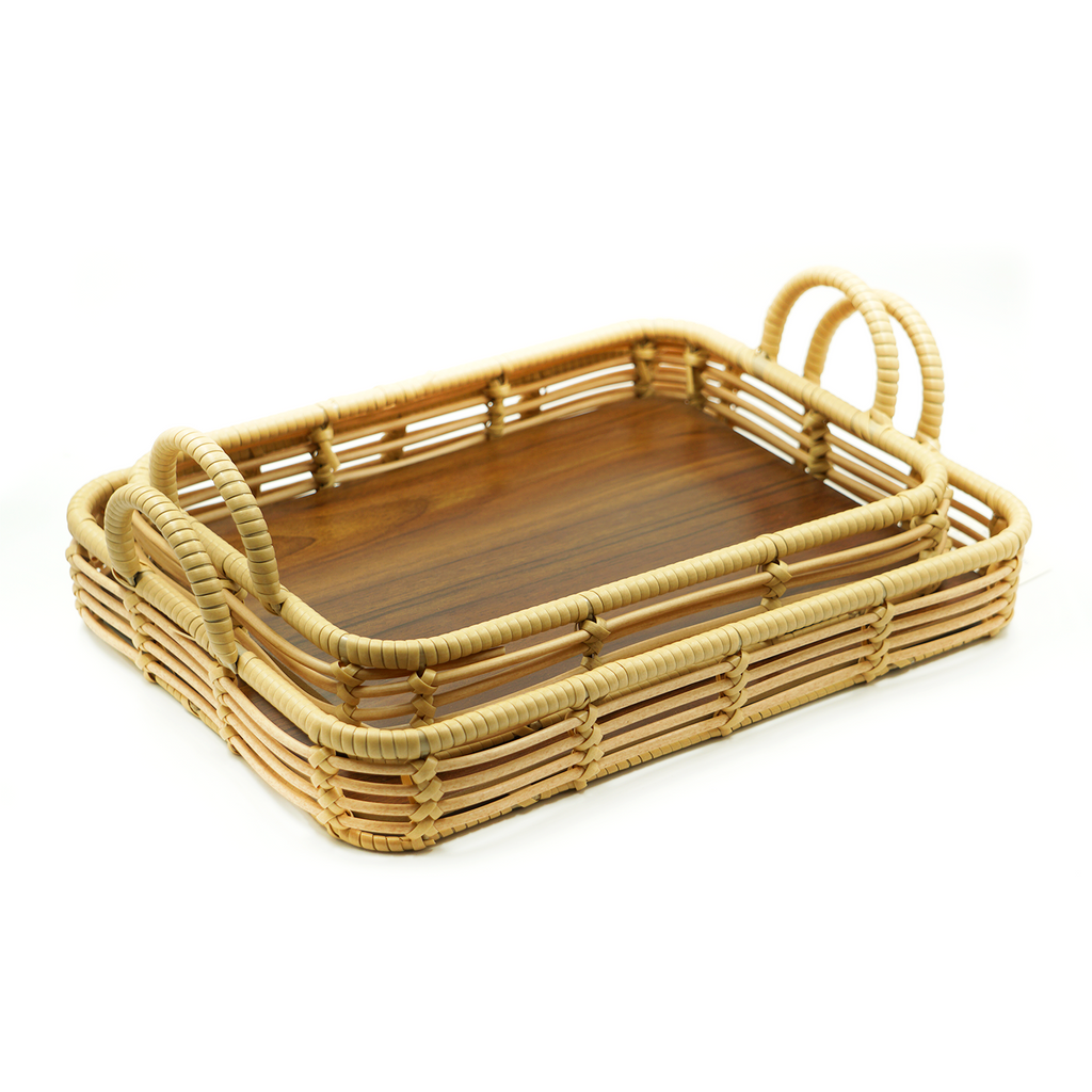 Este conjunto de 2 bandejas em MDF com acabamento em madeira clara alia resistência e elegância. As alças facilitam o transporte, tornando-as práticas para servir ou decorar ambientes. Duráveis e versáteis, são ideais para uso cotidiano ou momentos especiais, valorizando sua organização com estilo discreto e sofisticado.