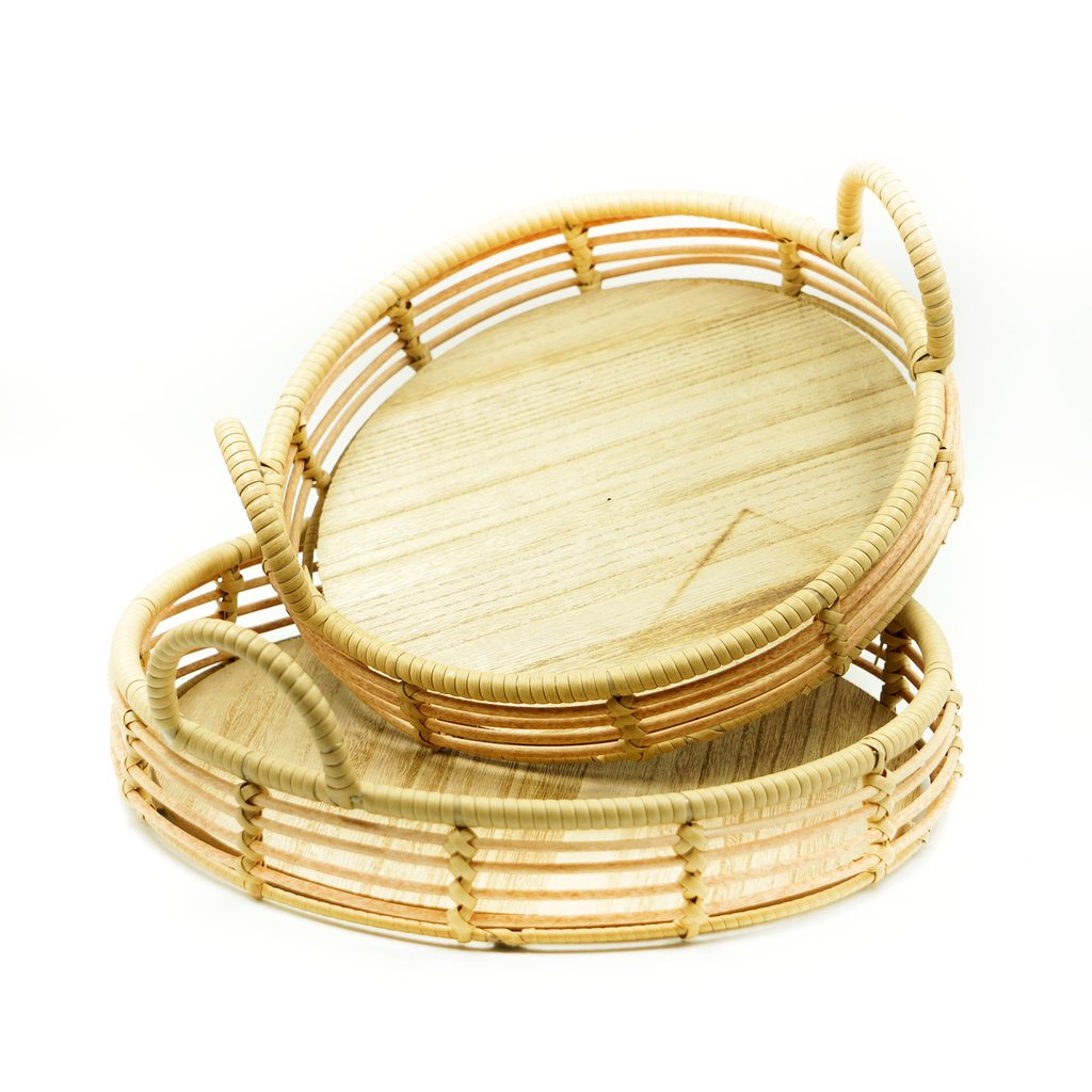 Conjunto com 2 bandejas redondas em MDF com acabamento PU, que oferecem resistência e um design elegante. O revestimento em PU proporciona uma superfície durável e fácil de limpar, enquanto o formato redondo agrega versatilidade para diversos usos. Perfeitas para organizar e servir com sofisticação, essas bandejas combinam funcionalidade e estilo para valorizar qualquer ambiente.