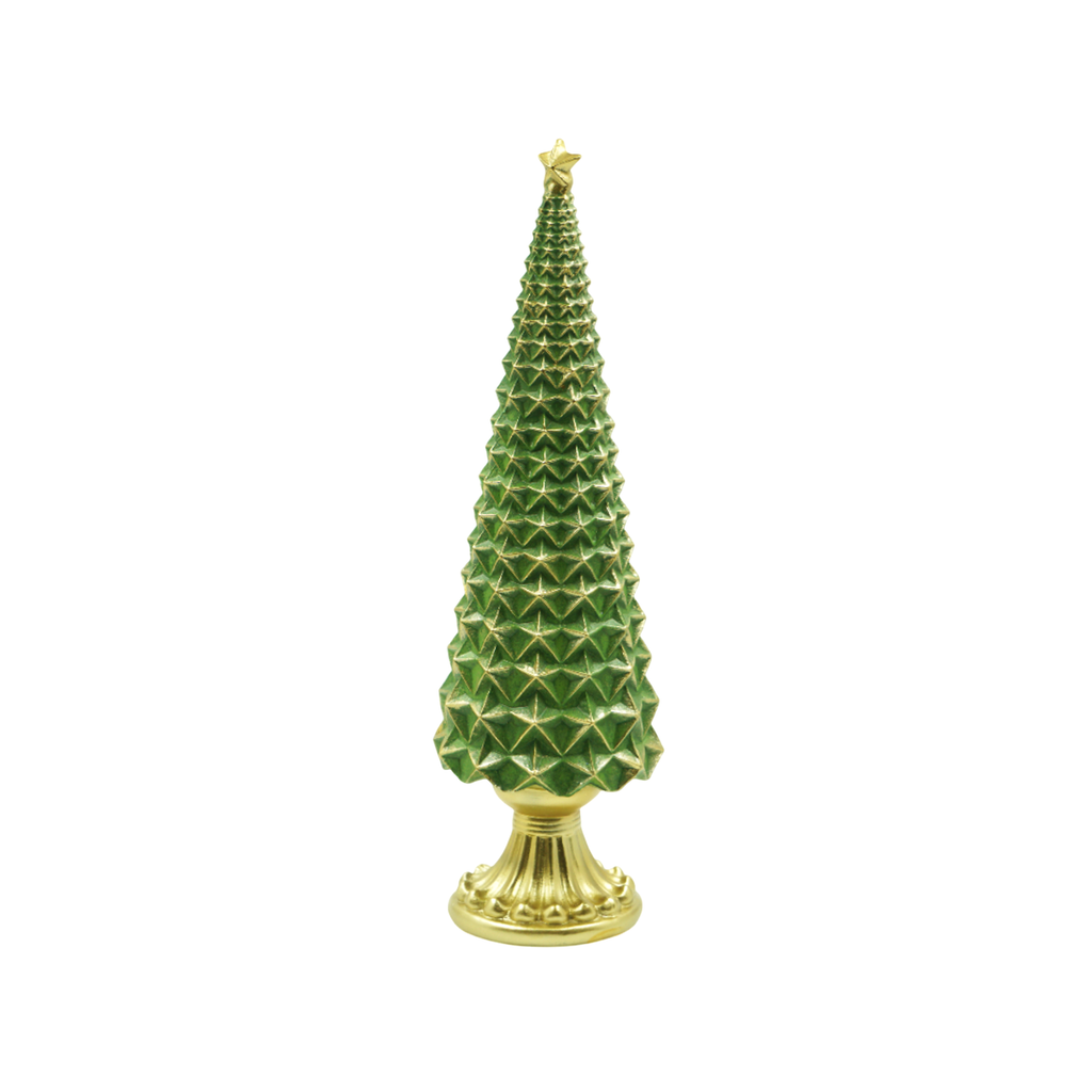 Árvore natalina em resina com 25cm de altura, ideal para decorar ambientes internos com elegância discreta. Confeccionada em resina de alta qualidade, apresenta acabamento refinado e durável, resistindo ao tempo sem desbotamento. Seu tamanho compacto permite posicionamento versátil em mesas, prateleiras ou nichos, complementando qualquer estilo de decoração. Peça decorativa que combina praticidade com sofisticação para a temporada festiva.