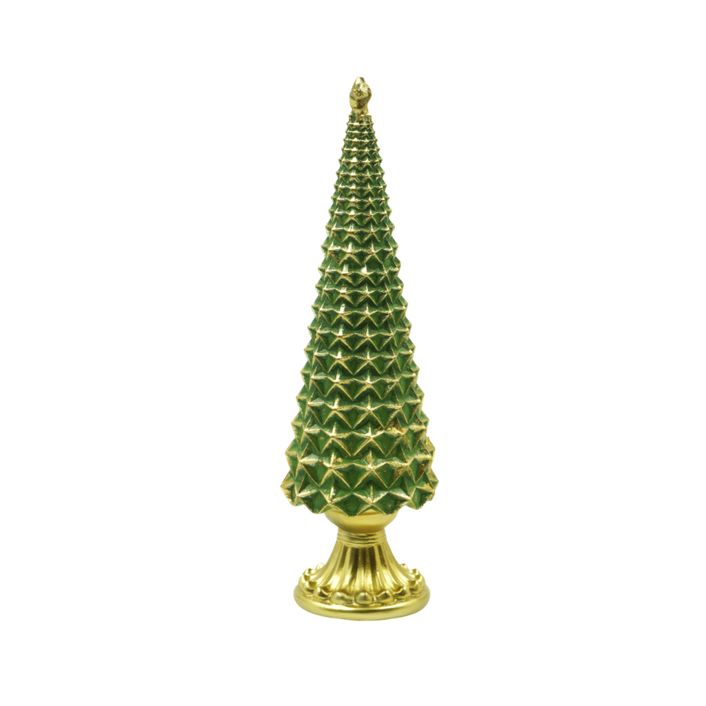Árvore natalina em resina com 40cm de altura, peça decorativa de destaque para ambientes que demandam presença visual marcante. Fabricada em resina premium com acabamento impecável, oferece resistência excepcional e preservação de cores ao longo dos anos. Dimensão generosa permite exibição em salas, entradas ou áreas comerciais, criando atmosfera festiva sofisticada. Investimento duradouro em decoração natalina que transcende as estações, mantendo sua beleza intacta.