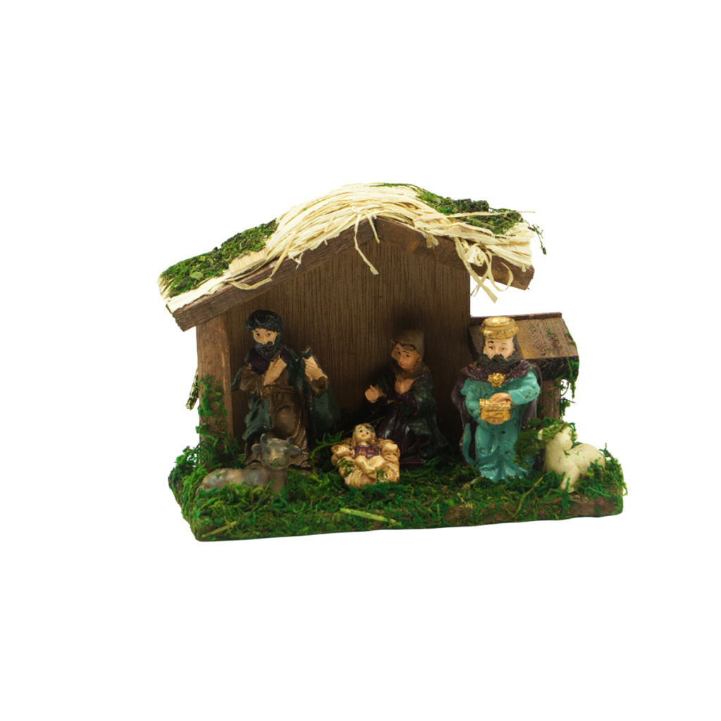 Presépio natalino em formato reduzido de 15x12cm, desenvolvido para integrar-se harmoniosamente em espaços com limitações dimensionais. Apresenta composição temática que representa fielmente a narrativa do nascimento, com acabamento que reflete atenção aos detalhes artísticos. Solução decorativa versátil adequada para mesas de centro, nichos, prateleiras e ambientes corporativos. Funciona tanto como peça de contemplação pessoal quanto como presente significativo para celebrações natalinas. Investimento em decoração que transcende a sazonalidade, mantendo relevância estética ao longo dos anos.