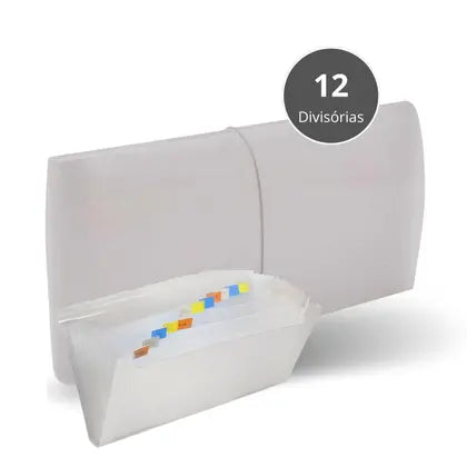 Pasta Sanfonada 12 Divisórias Porta Cheque PP Cristal Polibras