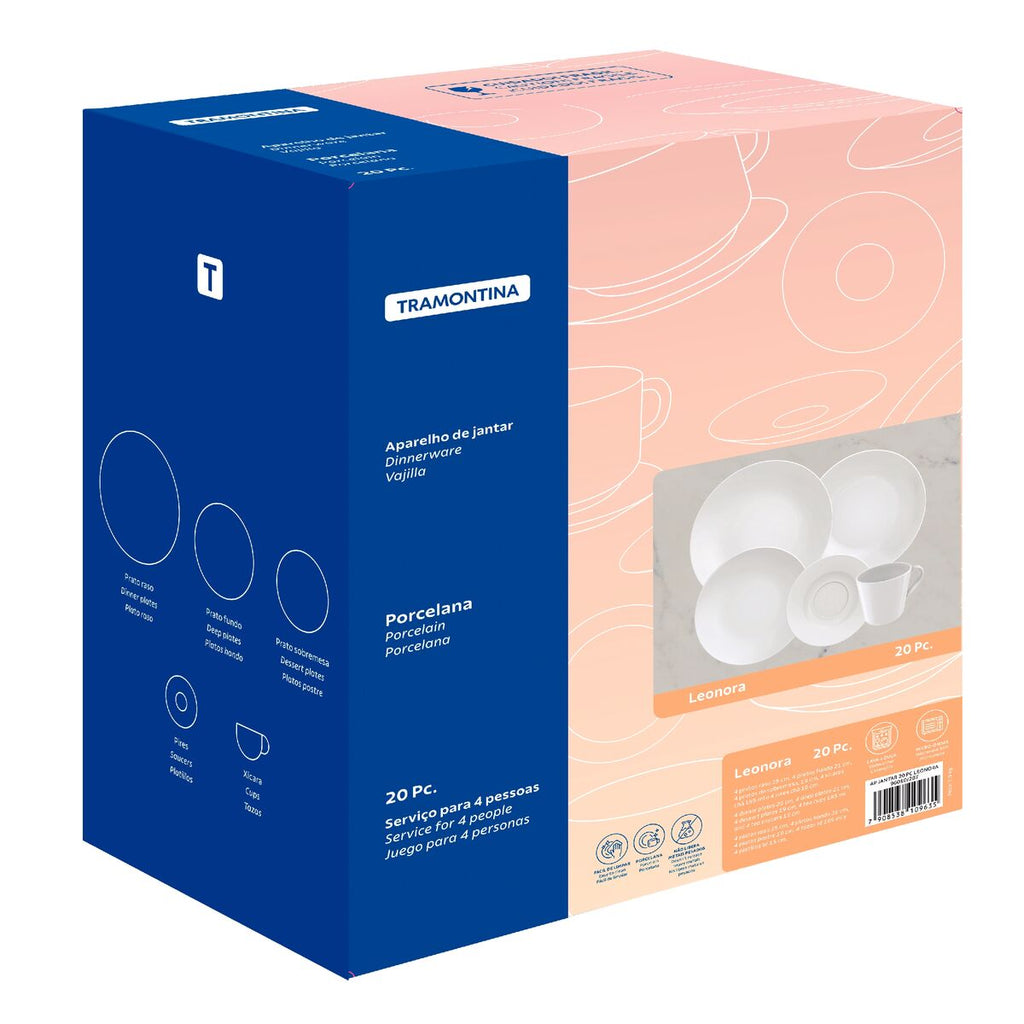 O Aparelho de Jantar Tramontina Leonora em Porcelana, com suas 20 peças, transcende o simples ato de se alimentar. Translúcidas, de brancura e brilho excepcionais, essas louças são a escolha ideal para uma decoração diferenciada e cheia de estilo. Uma mesa posta bem-feita, cuidadosamente planejada para cada ocasião, é a expressão máxima de atenção aos detalhes. Além de proporcionar um ambiente acolhedor, essas peças apresentam porosidade próxima de zero, garantindo não apenas beleza, mas também uma higiene ao evitar a proliferação de fungos e bactérias.
