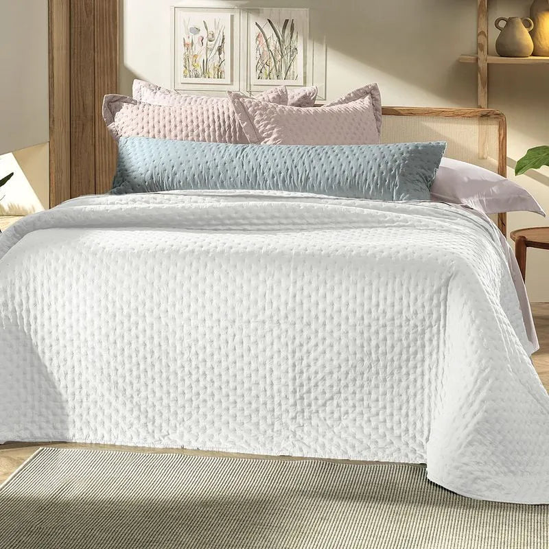 Jogo de colcha queen em tecido UltraWave com tecnologia Frisson, composto por 1 colcha e 2 fronhas. O tecido oferece maciez excepcional e durabilidade superior, mantendo a forma após múltiplas lavagens. Ideal para quem busca conforto premium com praticidade. Acabamento em branco neutro que combina com qualquer decoração de quarto. Fácil de limpar e hipoalergênico, garantindo noites de sono tranquilo e higiene duradoura.
