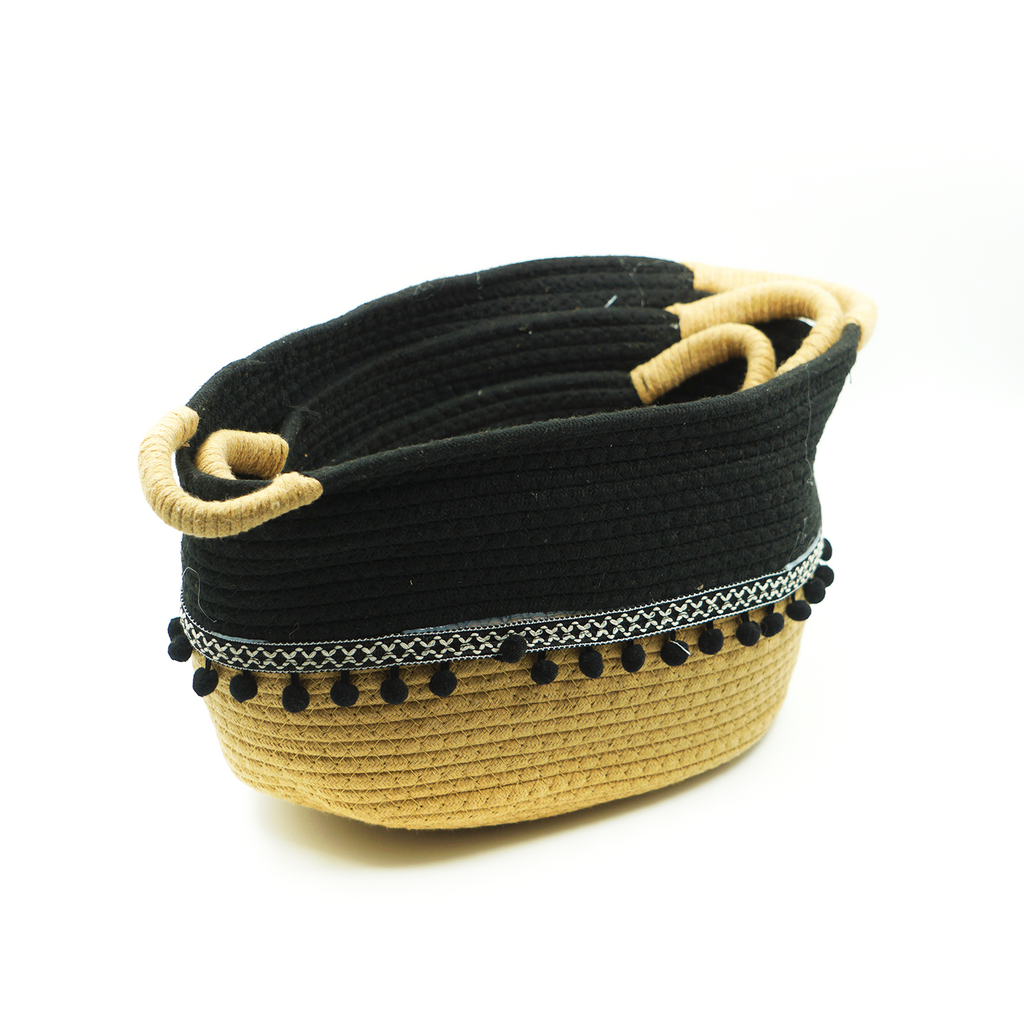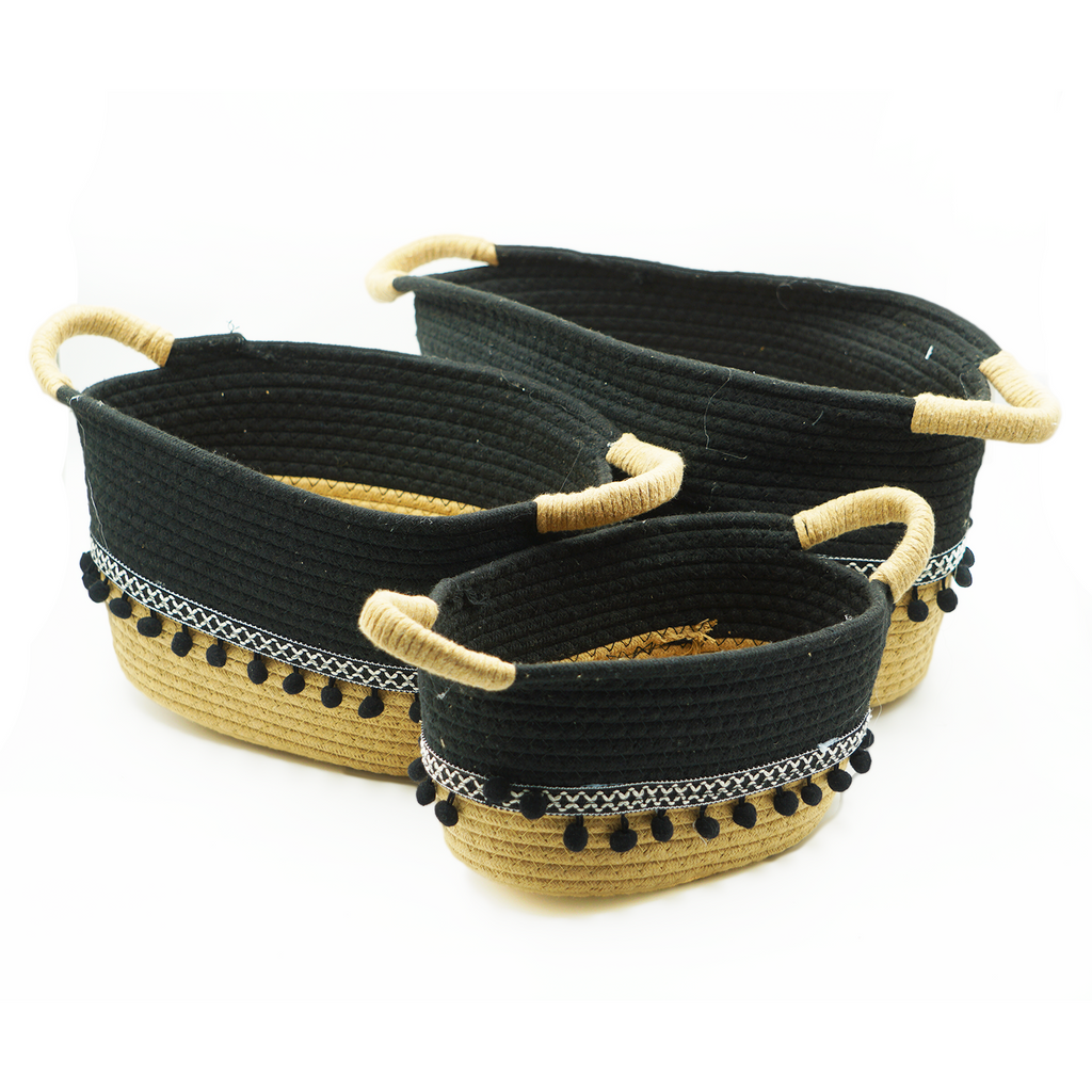Cestas de Corda de Algodão Bege Preto 3 peças