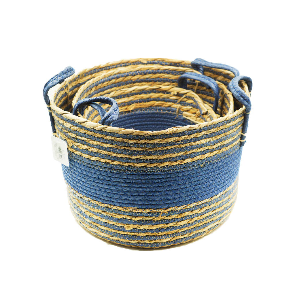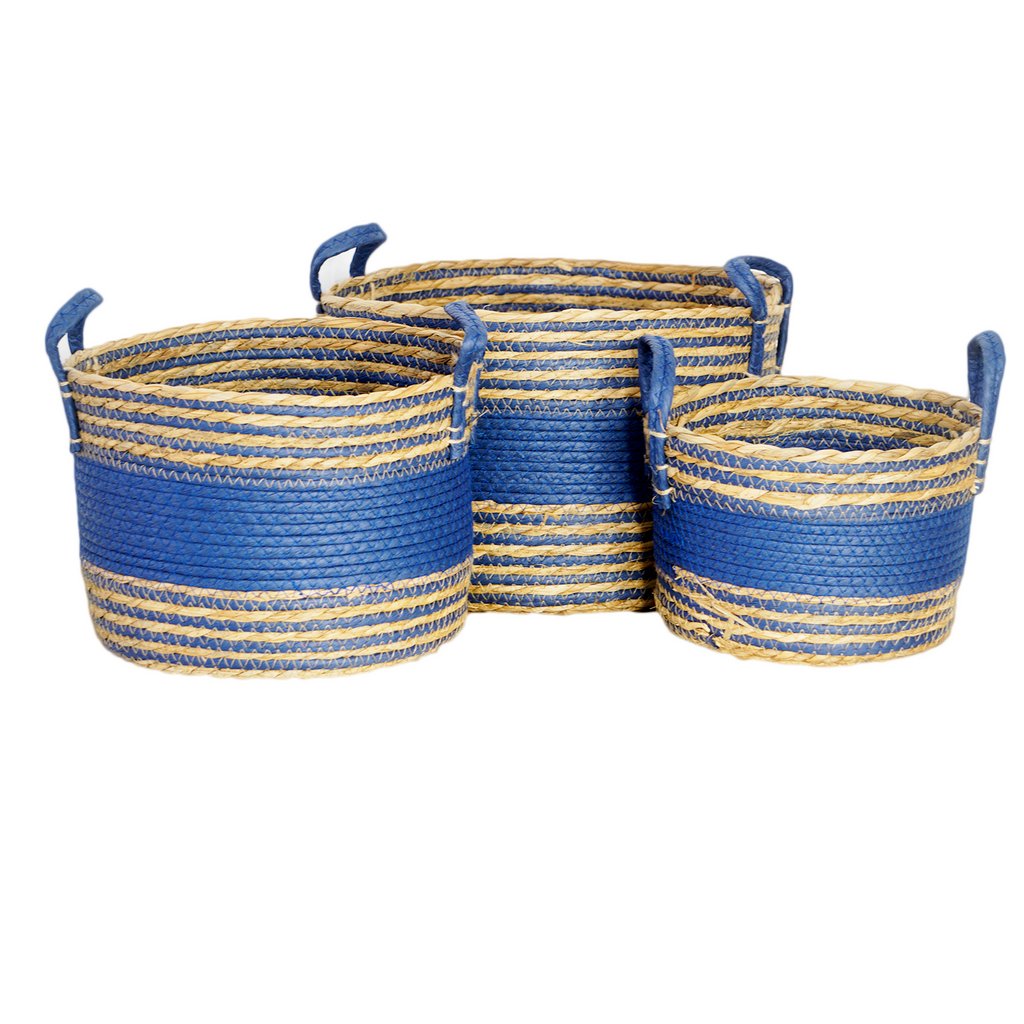 O conjunto de Cestas de Corda de Palha Azul, composto por 3 peças, alia funcionalidade e design contemporâneo. Confeccionadas com material resistente, essas cestas apresentam um tom azul que adiciona frescor e personalidade à decoração. Versáteis e práticas, são ideais para organização em diversos ambientes, integrando estilo e durabilidade com um toque natural e sofisticado.
