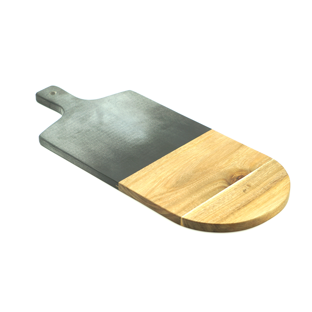 Placa de corte em madeira e pedra crua com dimensões de 18x42 cm, que combina a robustez natural da pedra com a resistência da madeira. A superfície em madeira oferece estabilidade para cortes precisos, enquanto a pedra crua adiciona durabilidade e um acabamento rústico elegante. Ideal para uso na preparação de alimentos, esta peça une funcionalidade e design contemporâneo para valorizar sua cozinha com praticidade e estilo.