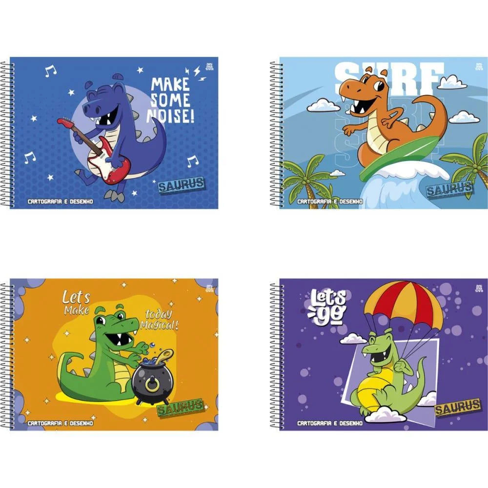 Os dinossauros mais divertidos e coloridos, apelidados carinhosamente de Saurus, estampam a capa desta coleção cheia de alegria e energia. O Caderno de Desenho Universitário Capa Dura Saurus foi pensado para proporcionar uma experiência divertida e criativa para as crianças, com personagens adorados que trazem muita cor e diversão para o dia a dia.