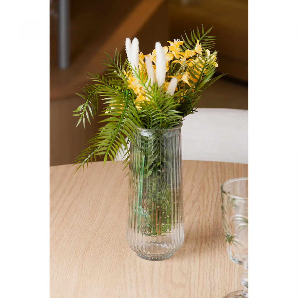 Este vaso Reflexos em Vidro de 20 cm combina design sofisticado com funcionalidade. Seu vidro transparente realça a beleza das flores ou plantas, enquanto o acabamento liso e reflexivo proporciona um toque moderno ao ambiente. Ideal para decorar salas, escritórios ou espaços que pedem um detalhe elegante, ele oferece durabilidade e versatilidade em um tamanho compacto. Perfeito para valorizar sua decoração com estilo contemporâneo e refinado.
